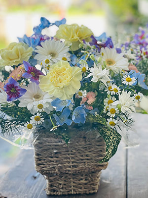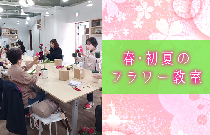 季節のお花を使用し、大人クラスも子どもクラスも楽しく作成できる内容となっております。お気軽にご参加下さい!